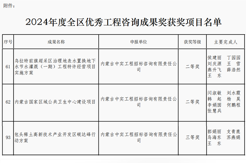 2025-04-1610065 次2025年4月16日,内蒙古工程咨询协会公布了2024年度优秀咨询成果奖获奖单位名单,我司取得两个二等奖和一个三等奖,我司专业能力和服务质量再次获得行业的认可。此次获奖,不仅体…
